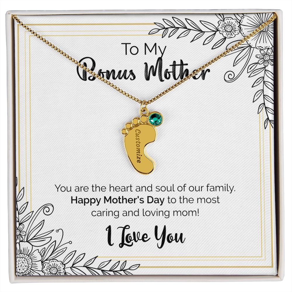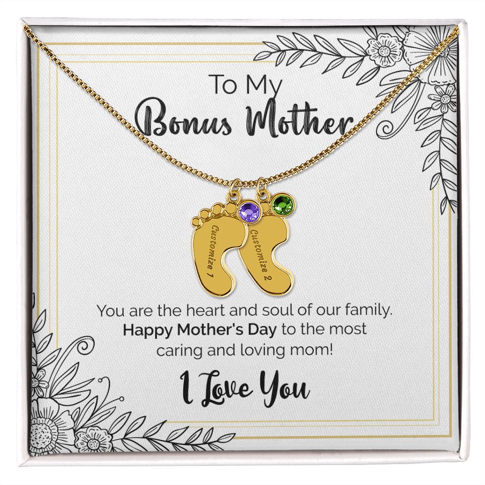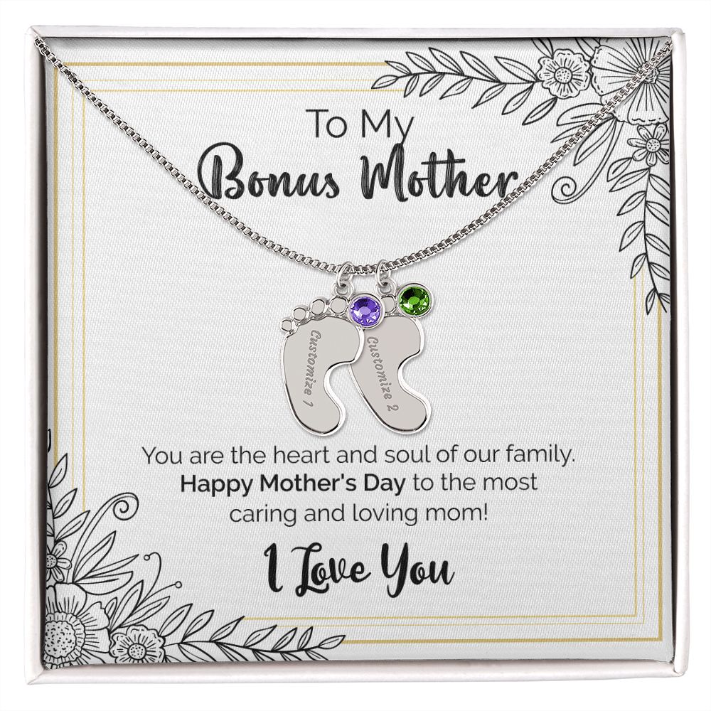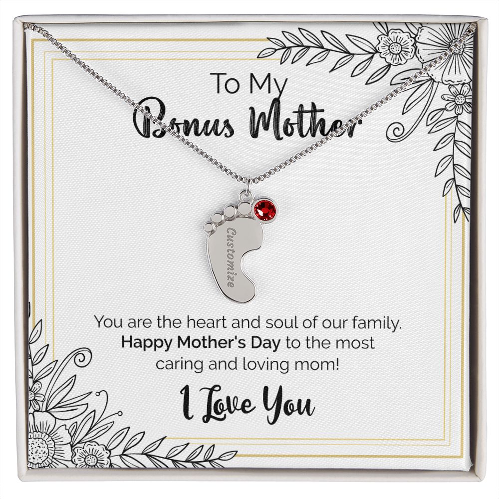 To My Bonus Mother | Happy Mother's Day | Custom Baby Feet Necklace with Birthstone