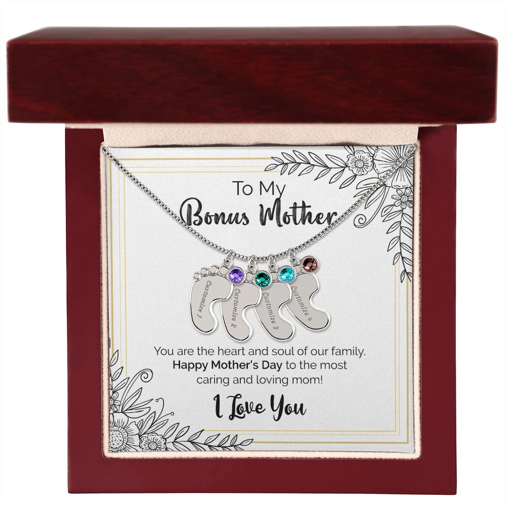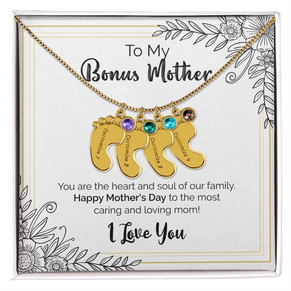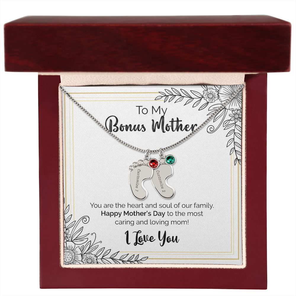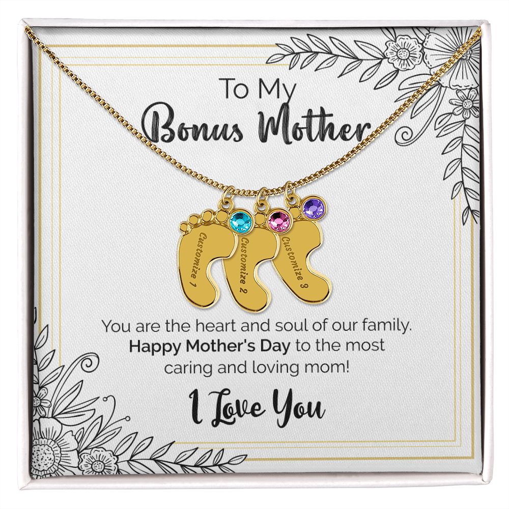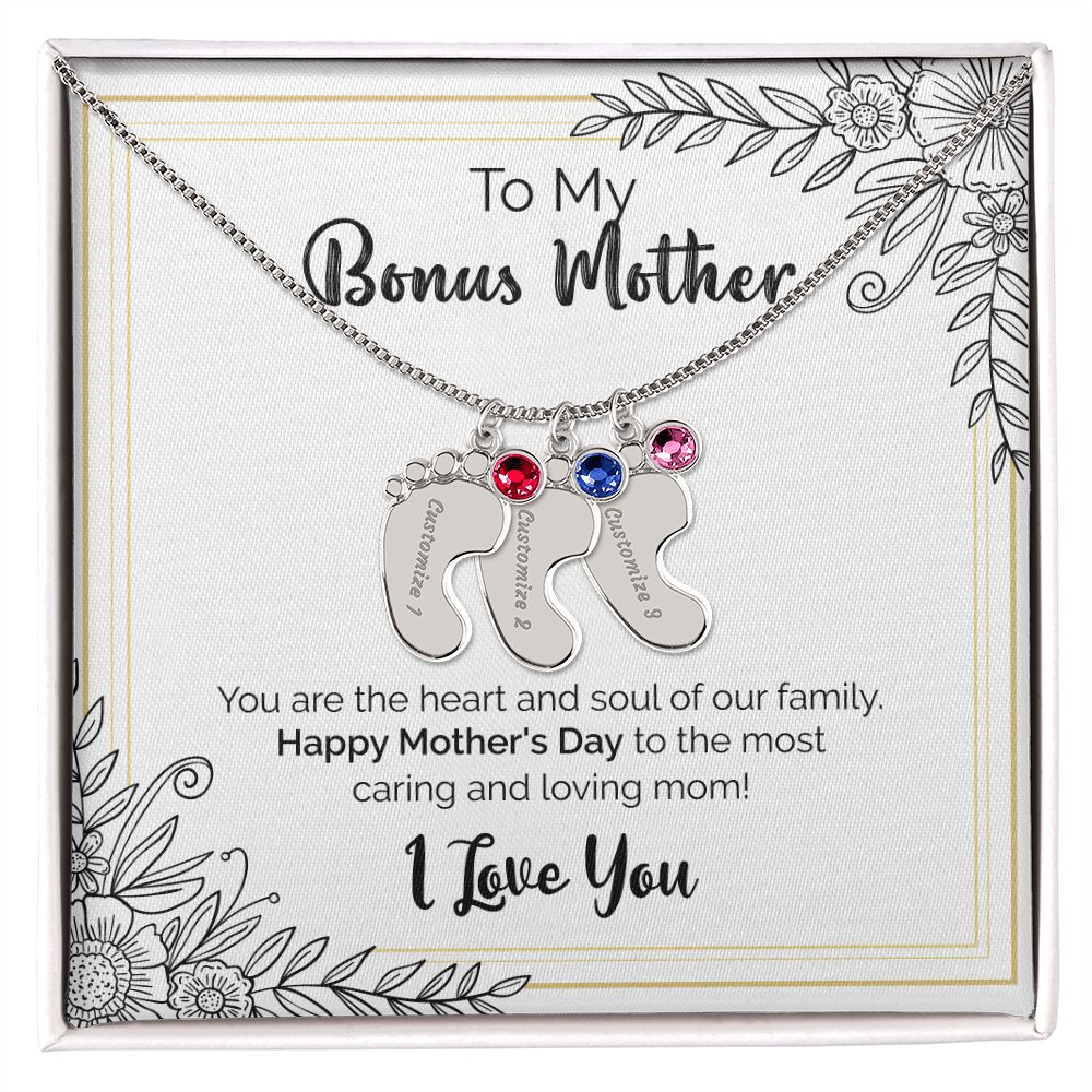 To My Bonus Mother | Happy Mother's Day | Custom Baby Feet Necklace with Birthstone