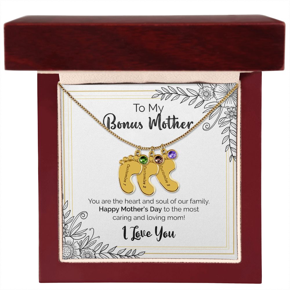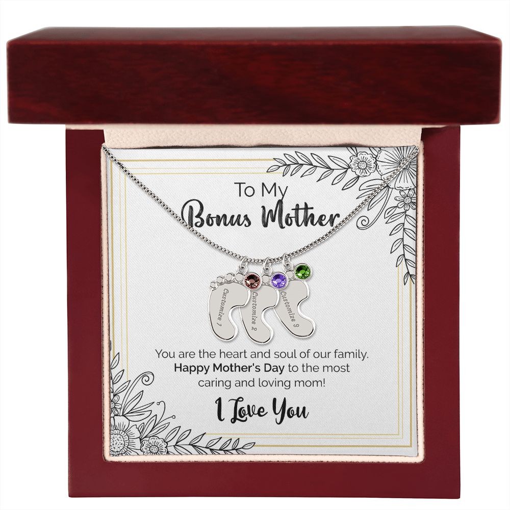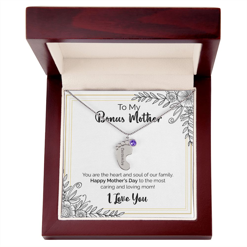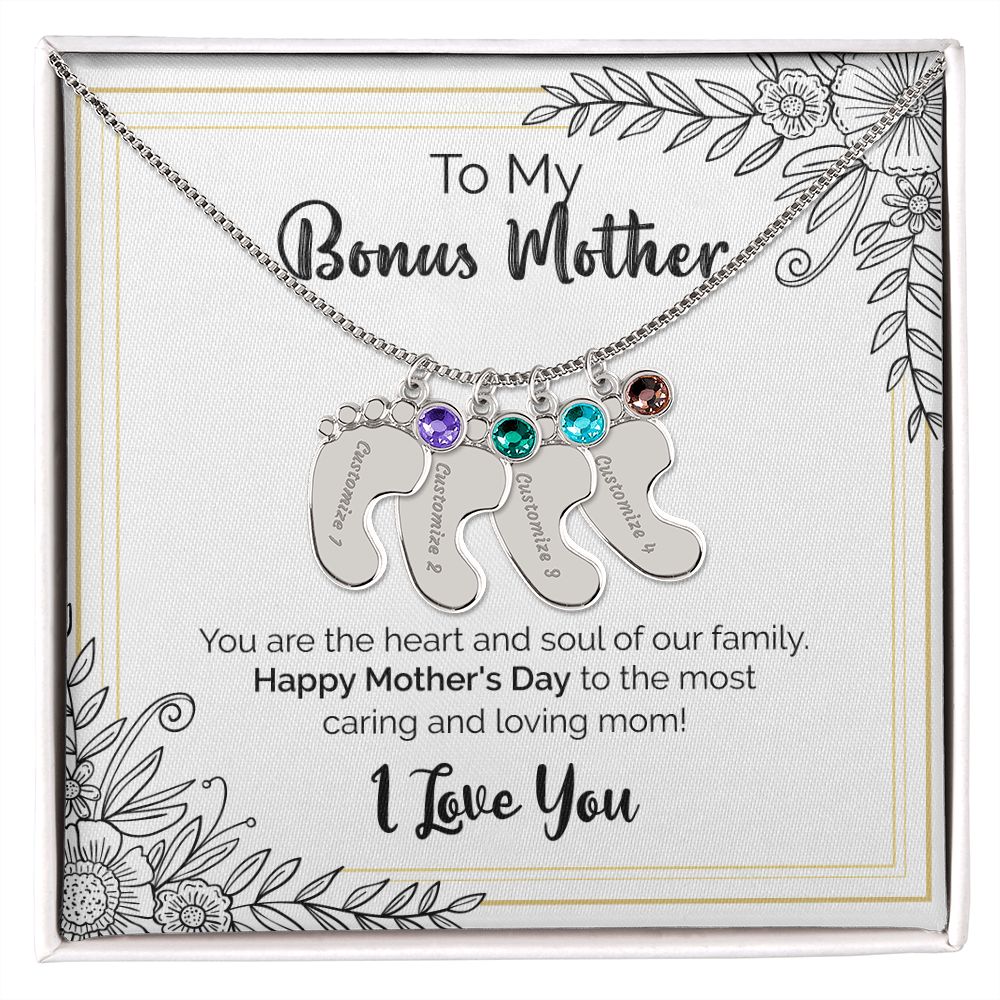 To My Bonus Mother | Happy Mother's Day | Custom Baby Feet Necklace with Birthstone