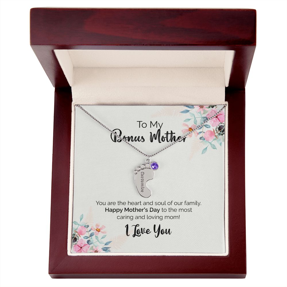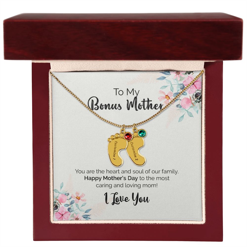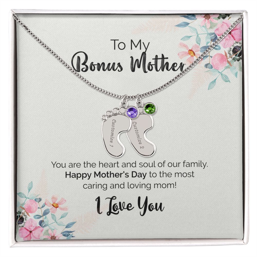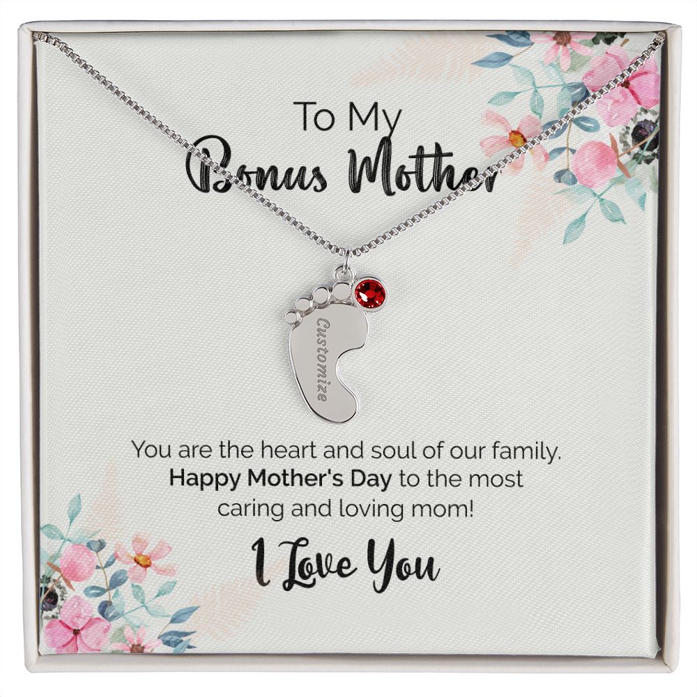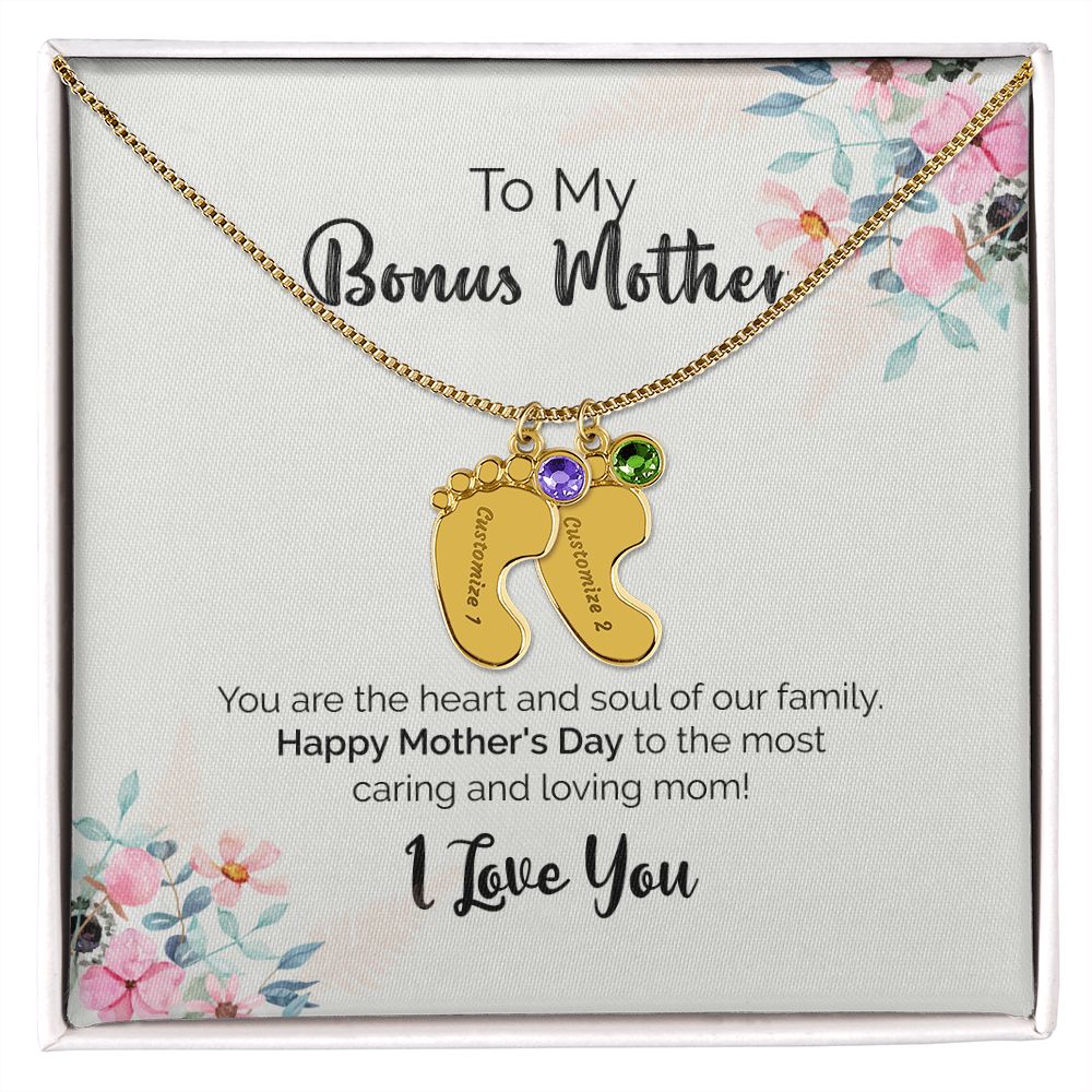 To My Bonus Mother | I Love You | Custom Baby Feet Necklace with Birthstone