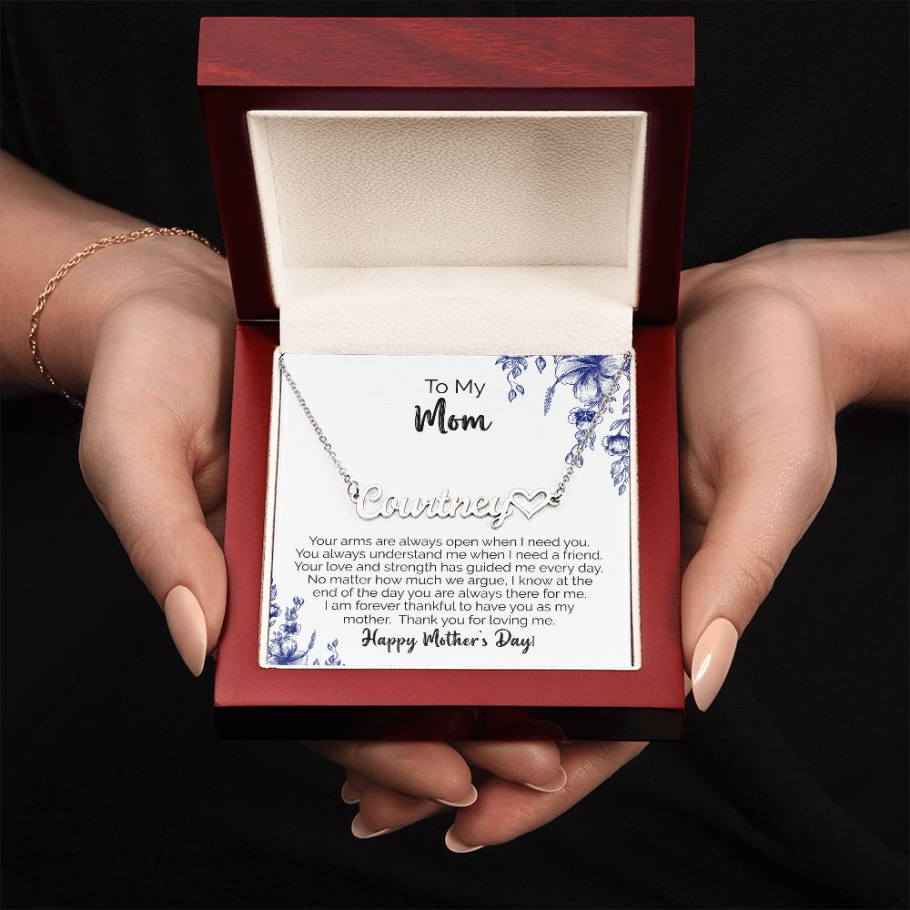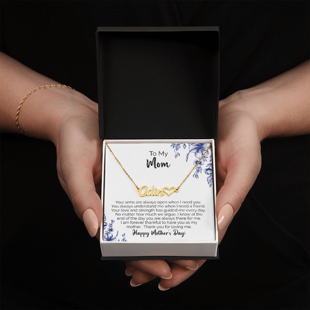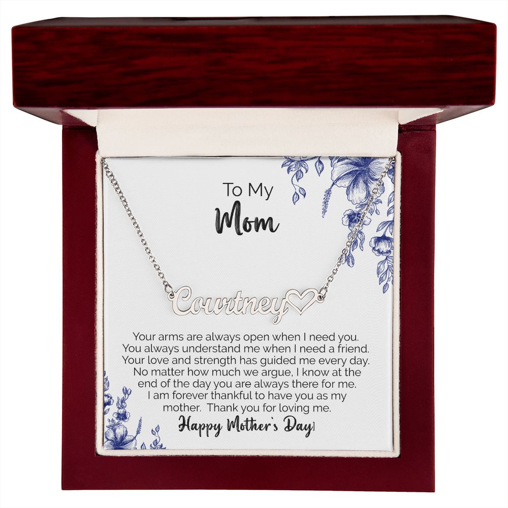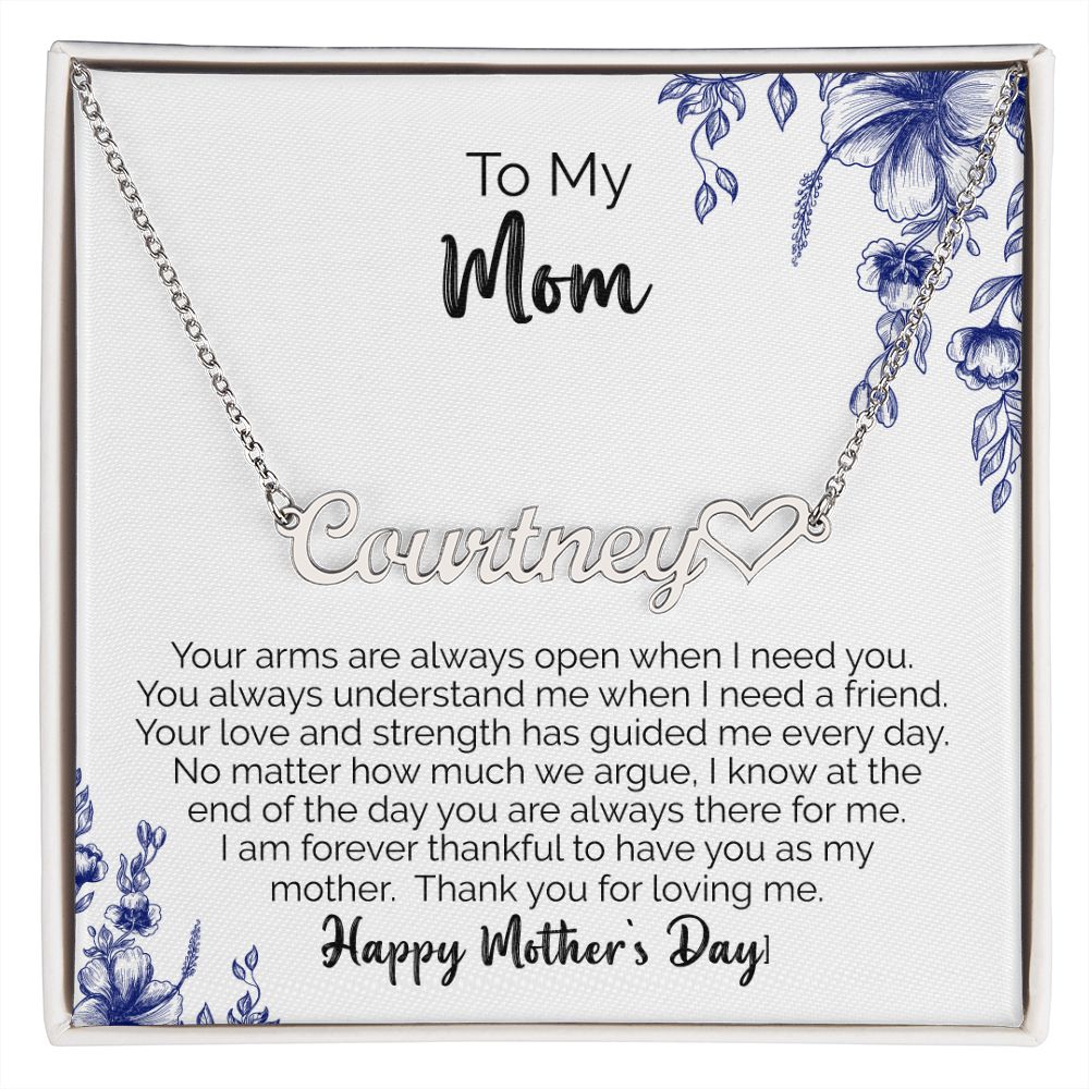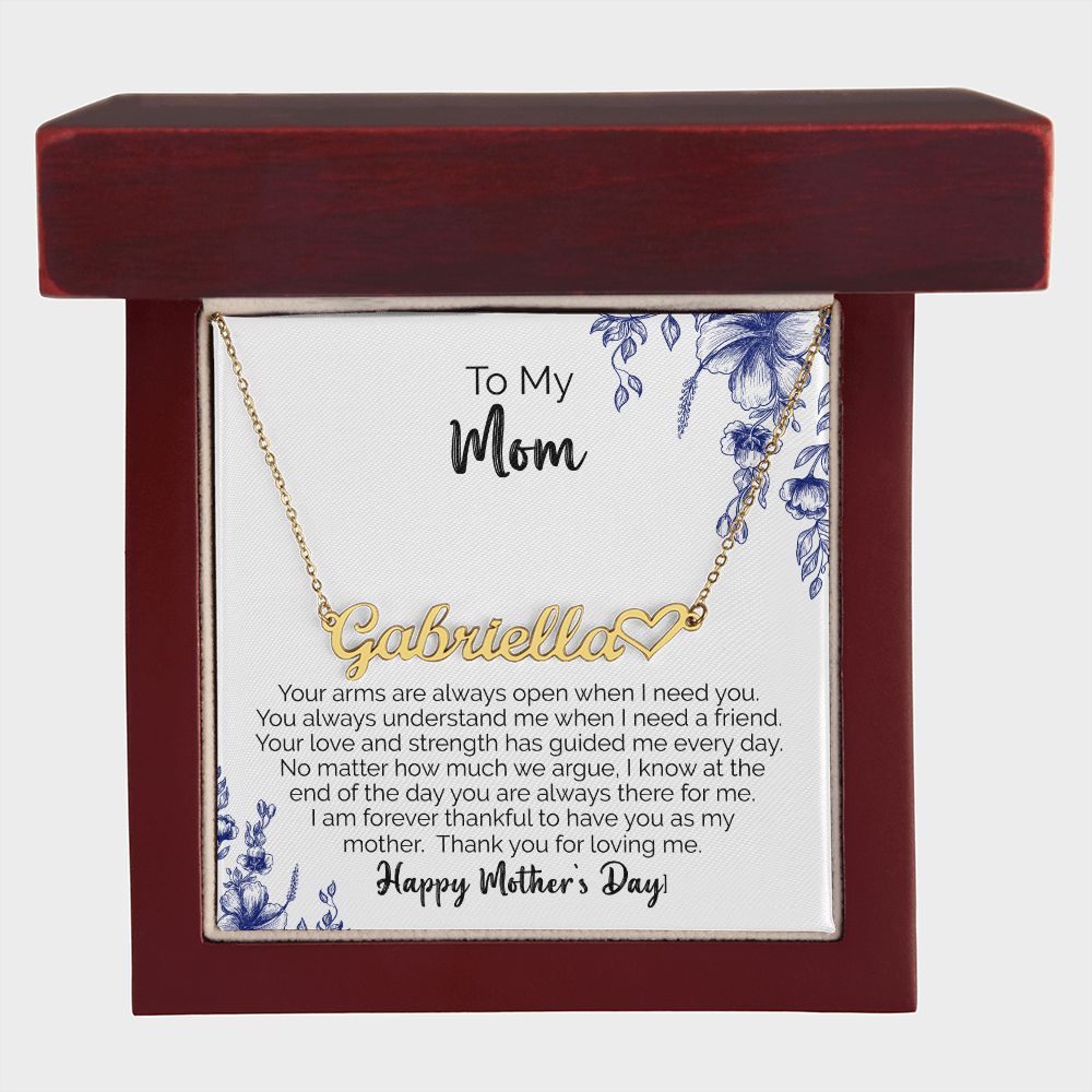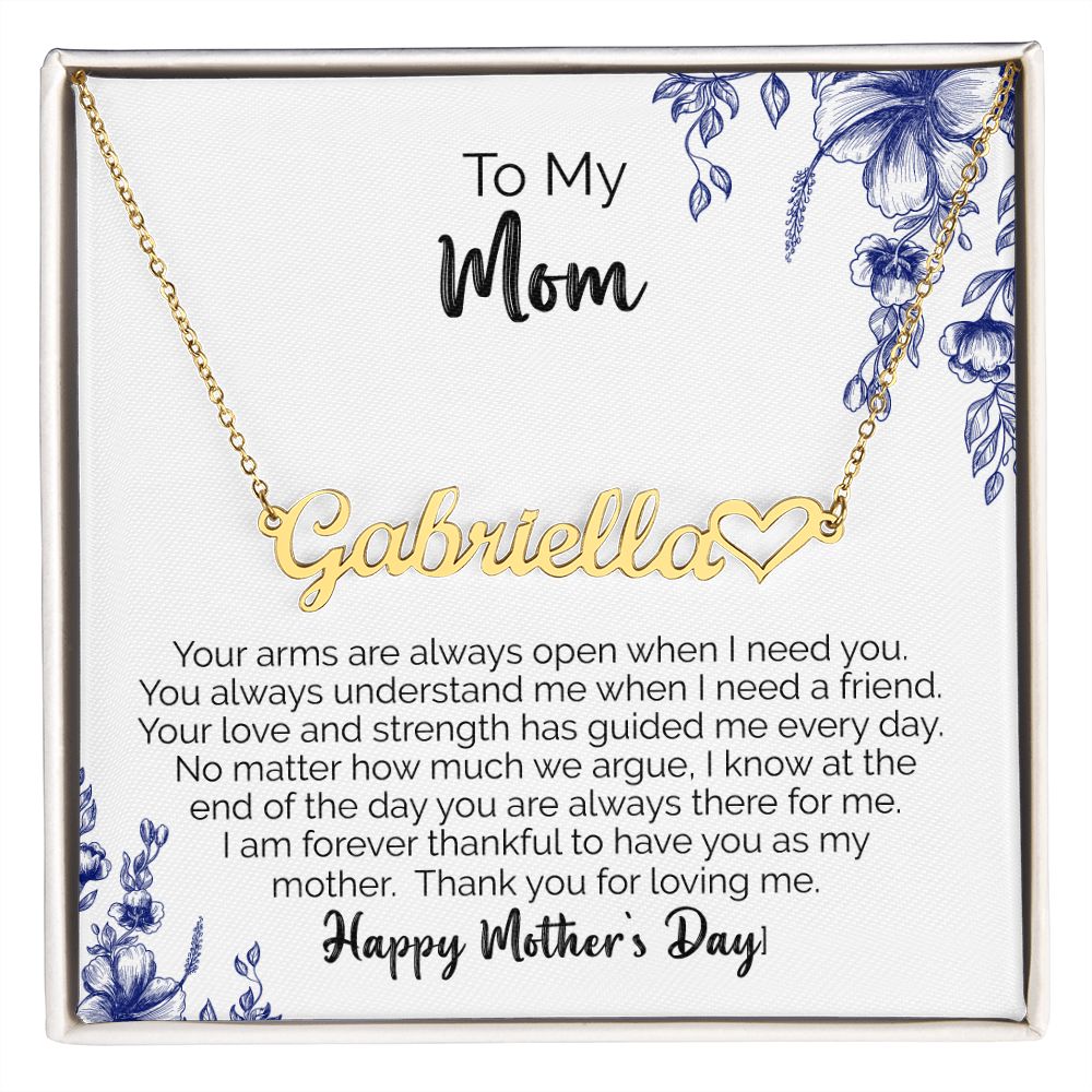 To My Mom | Thank You For Loving Me | Name Necklace + Heart