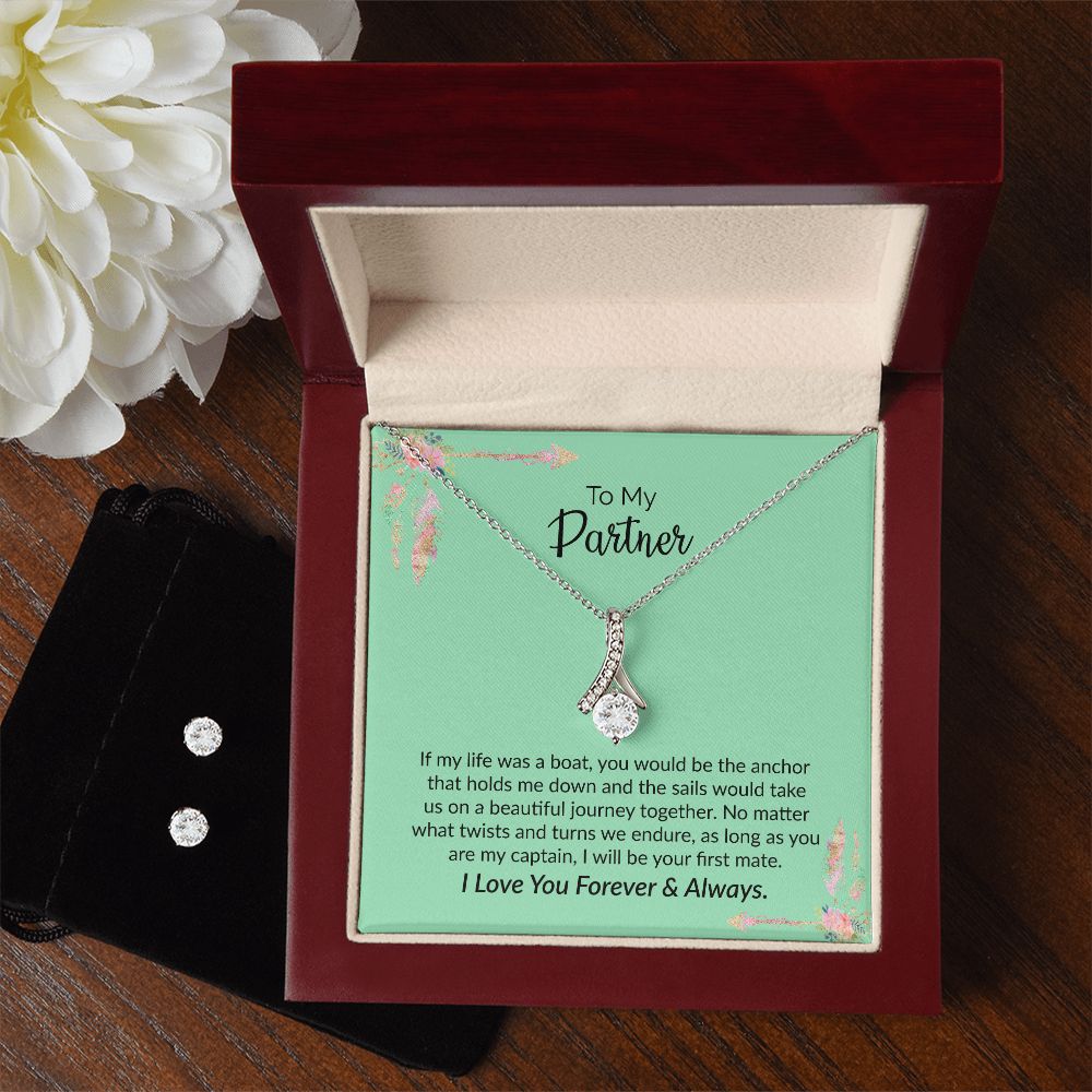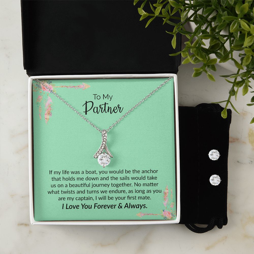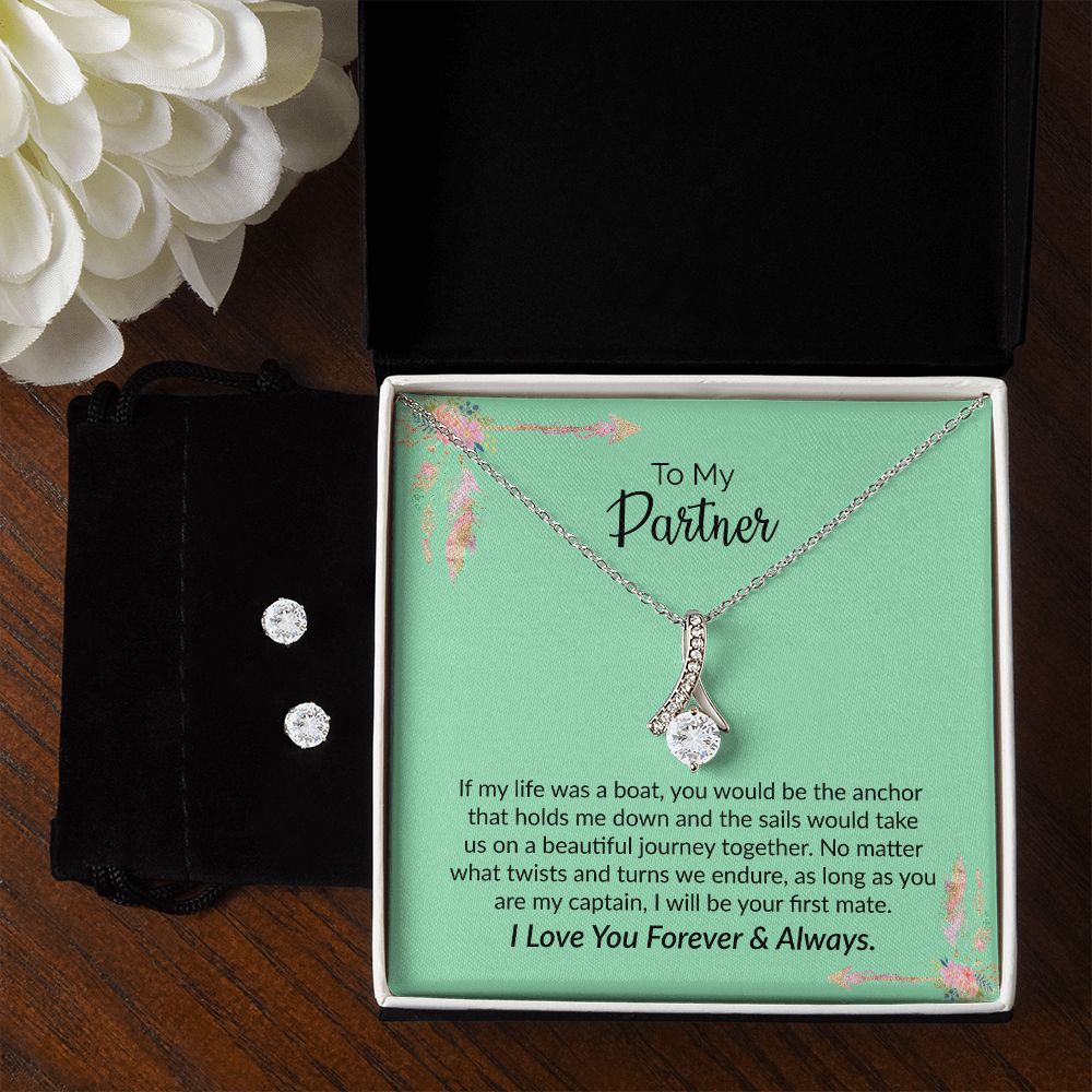 To My Partner | I Love You Forever & Always | Alluring Beauty Necklace and Cubic Zirconia Earring Set