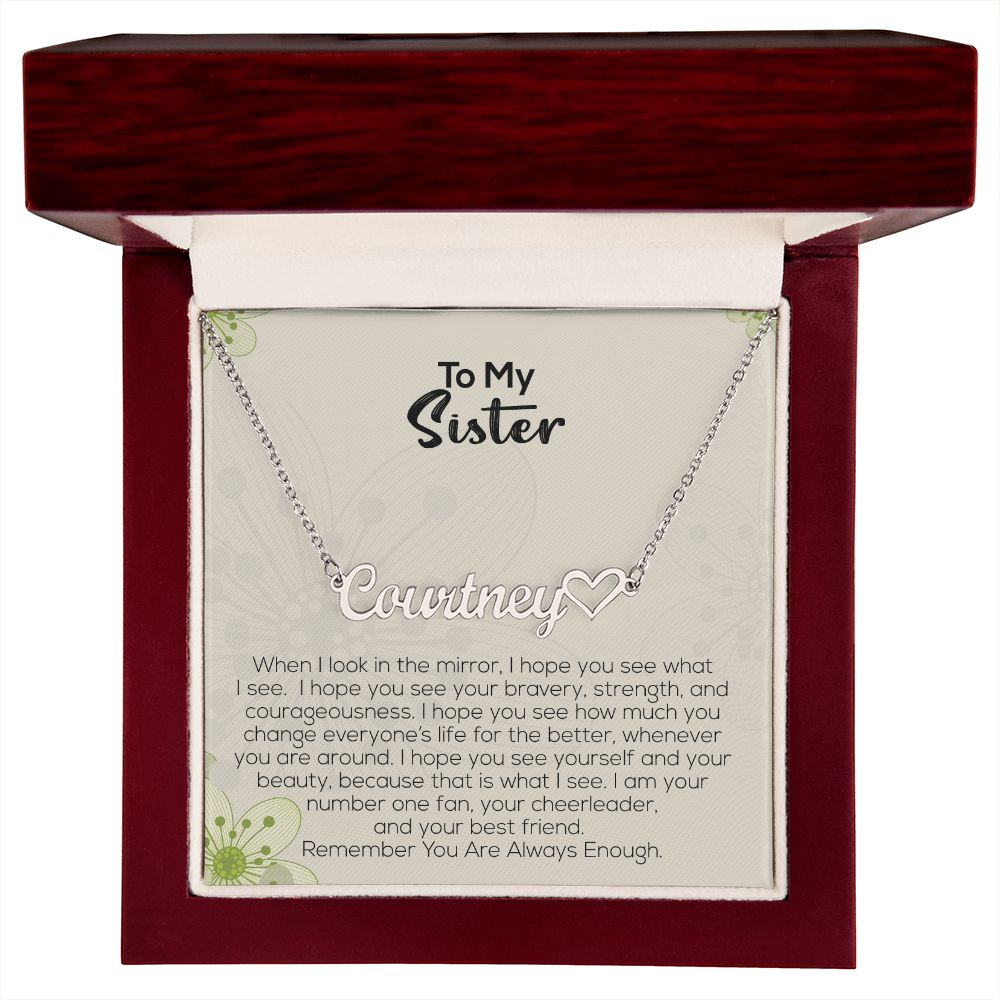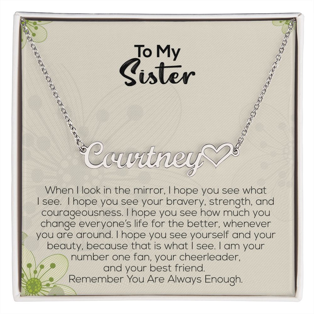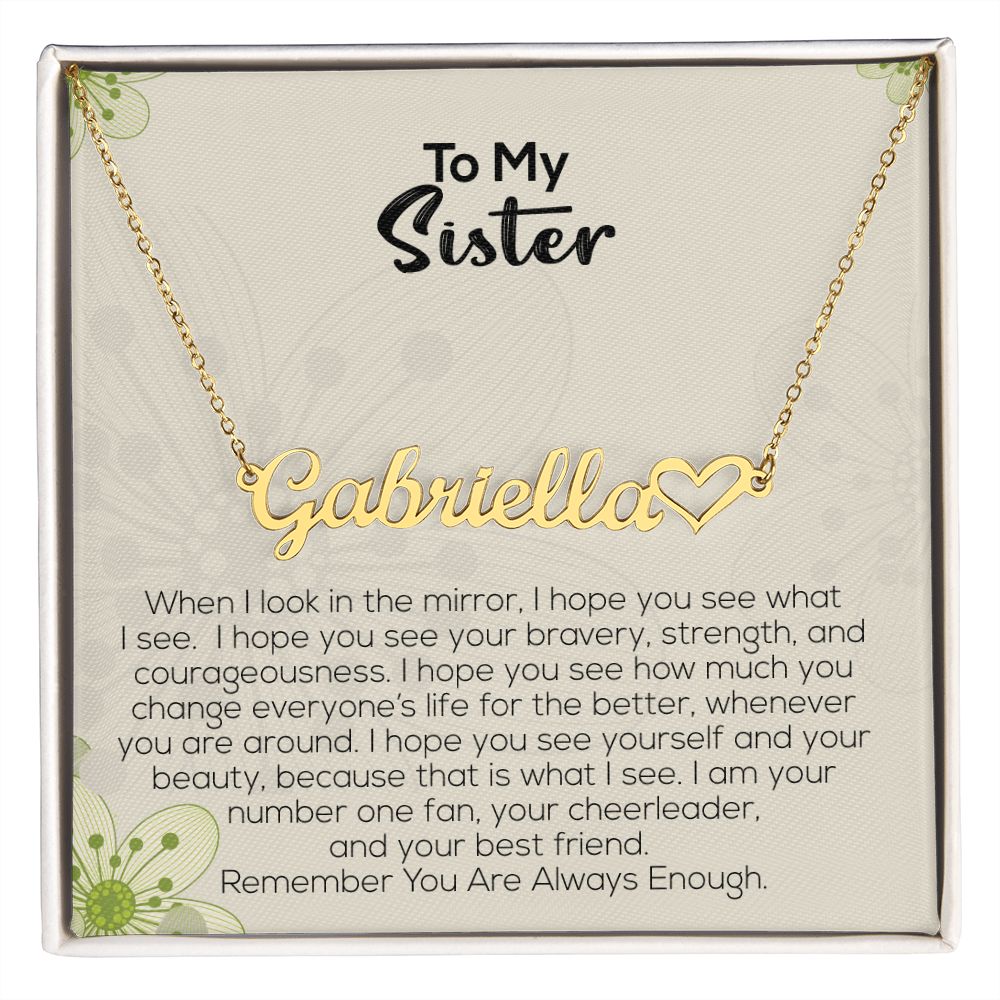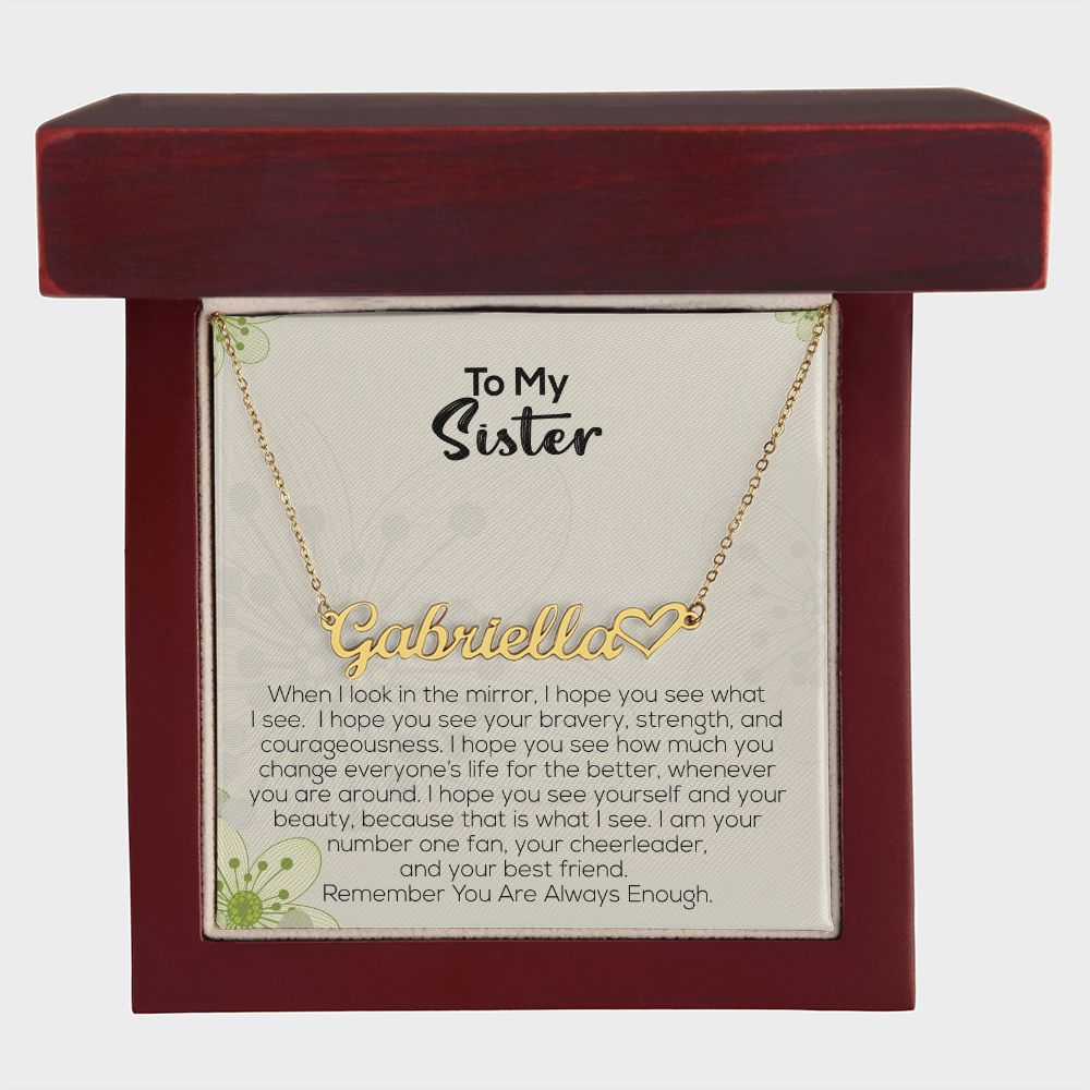 To My Sister | Remember You Are Always Enough | Name Necklace + Heart