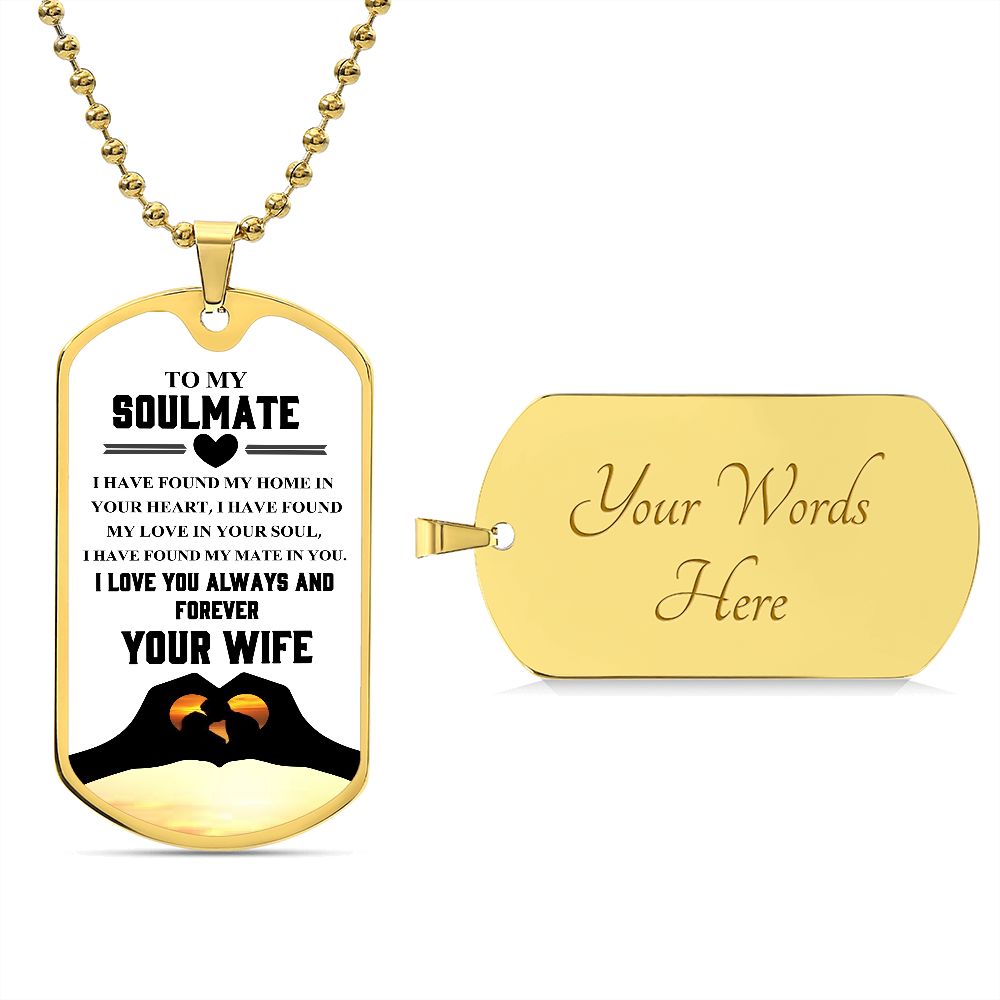 To My Soulmate | I Love You Always & Forever Your Wife | Luxury Dog Tag