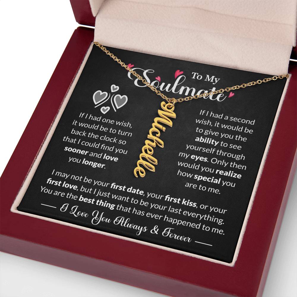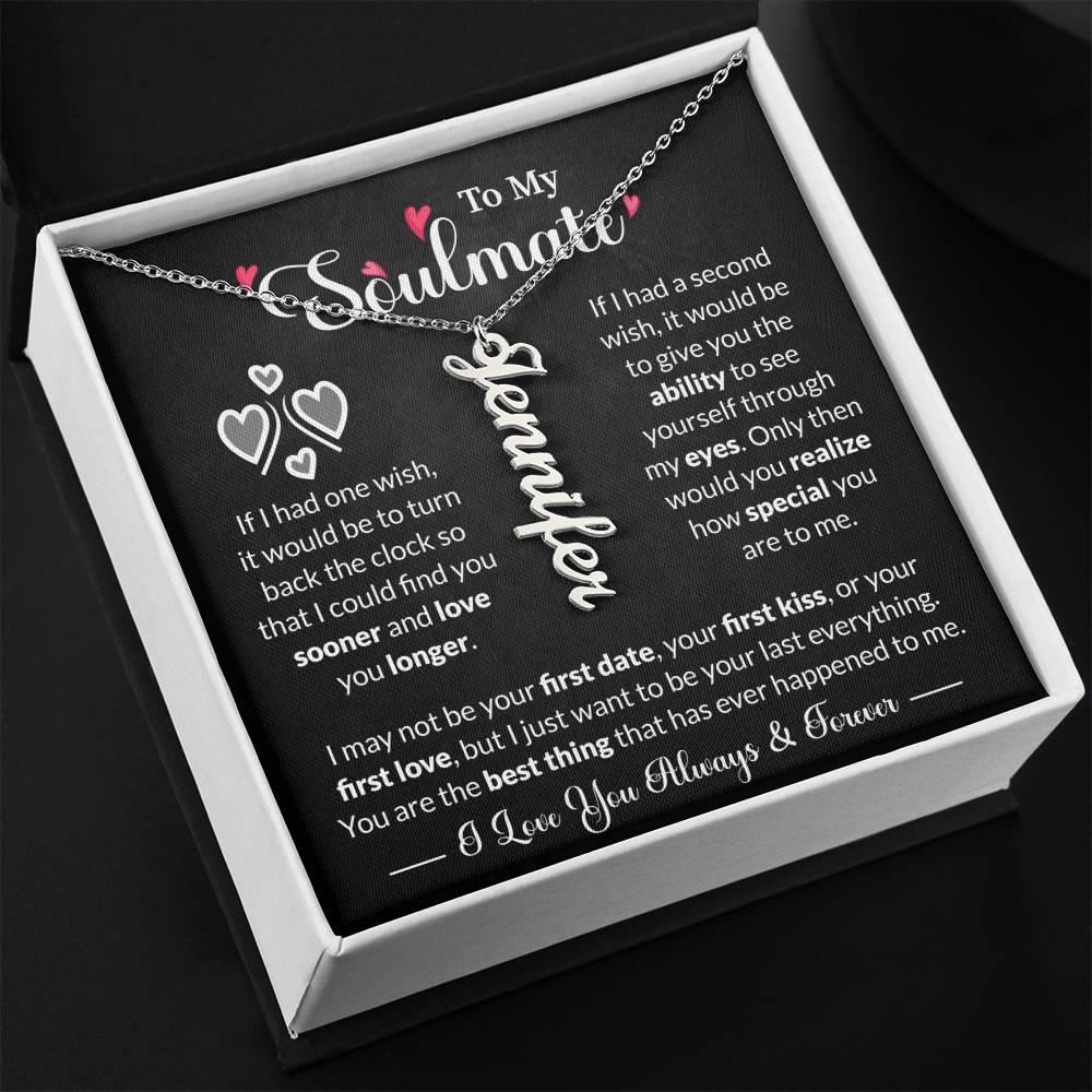 Give your special someone a custom vertical necklace made just for them! Our Personalized Vertical Name Necklace is the perfect gift for your loved ones and will become a versatile accessory for any occasion. From a heart-warming holiday present, anniversary or birthday gift, or just because, this unique necklace adds a trendy touch to any outfit.