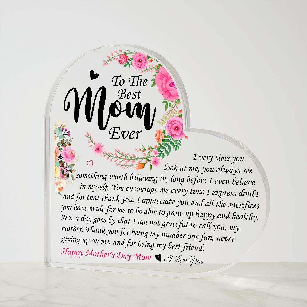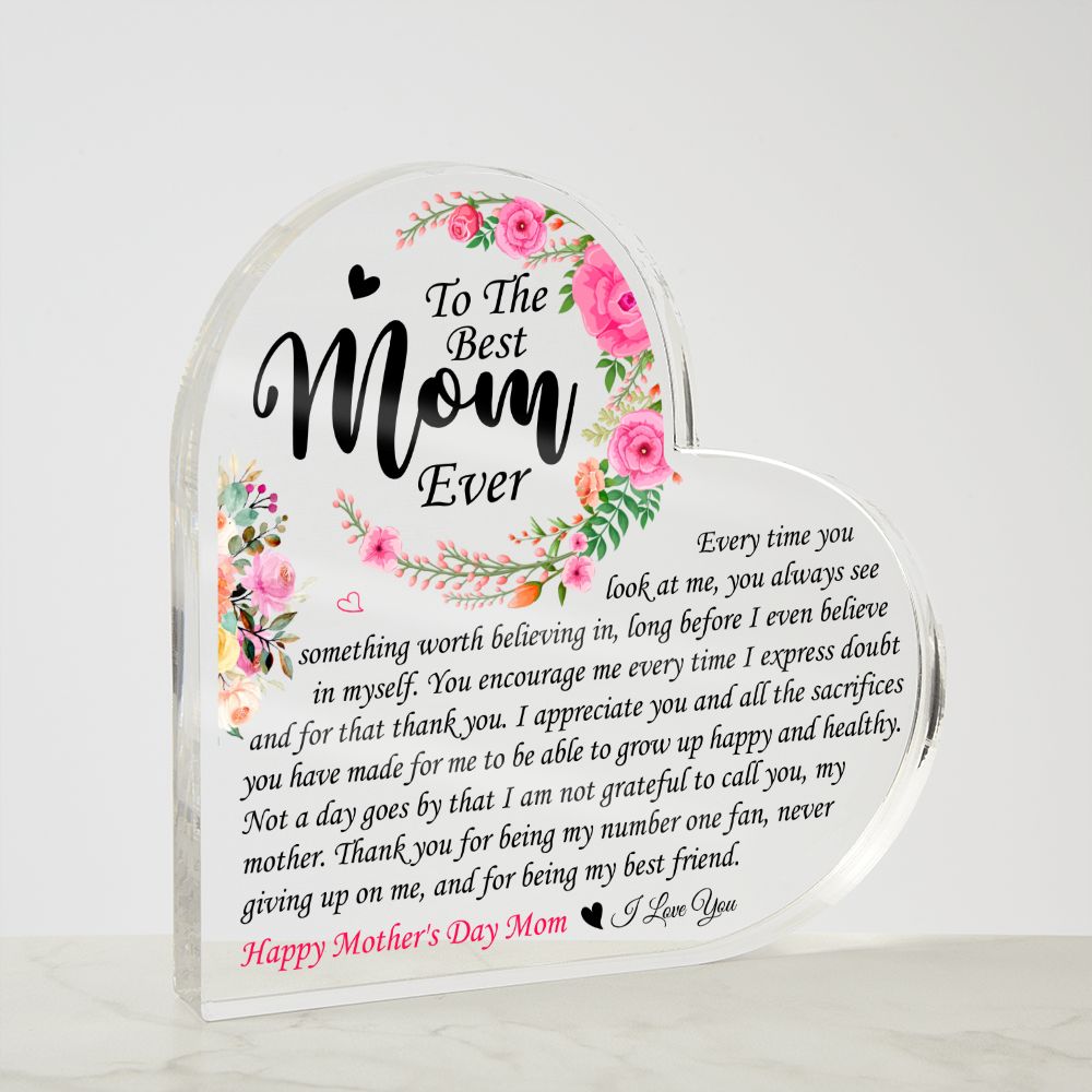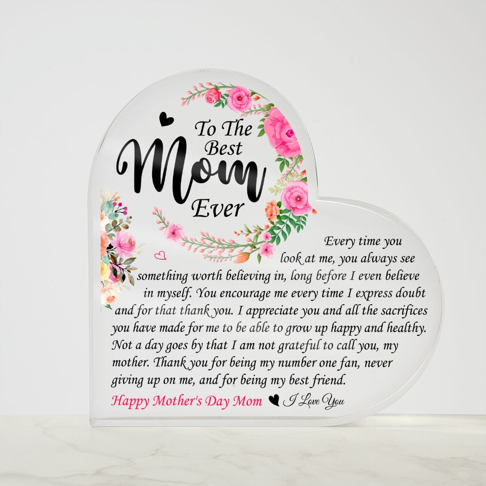 To The Best Mom Ever | Happy Mother's Day Mom | Heart Shaped Plaque