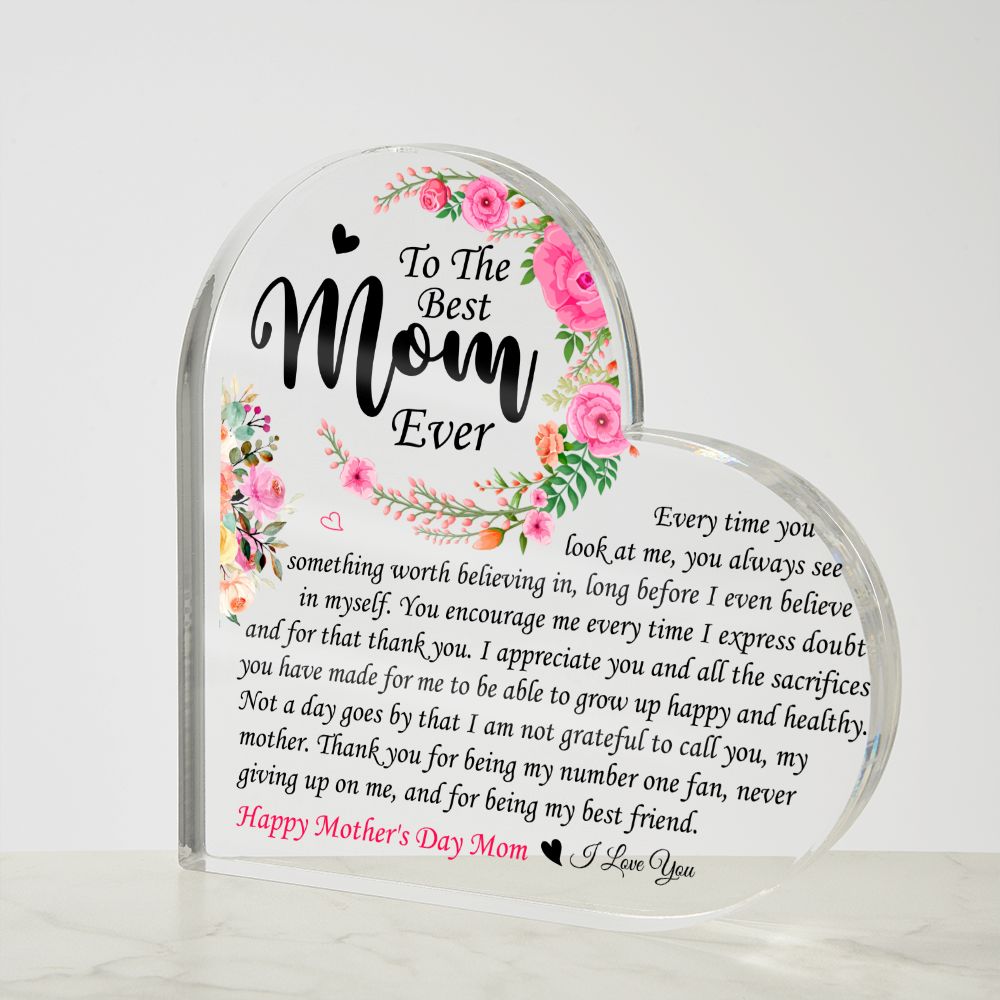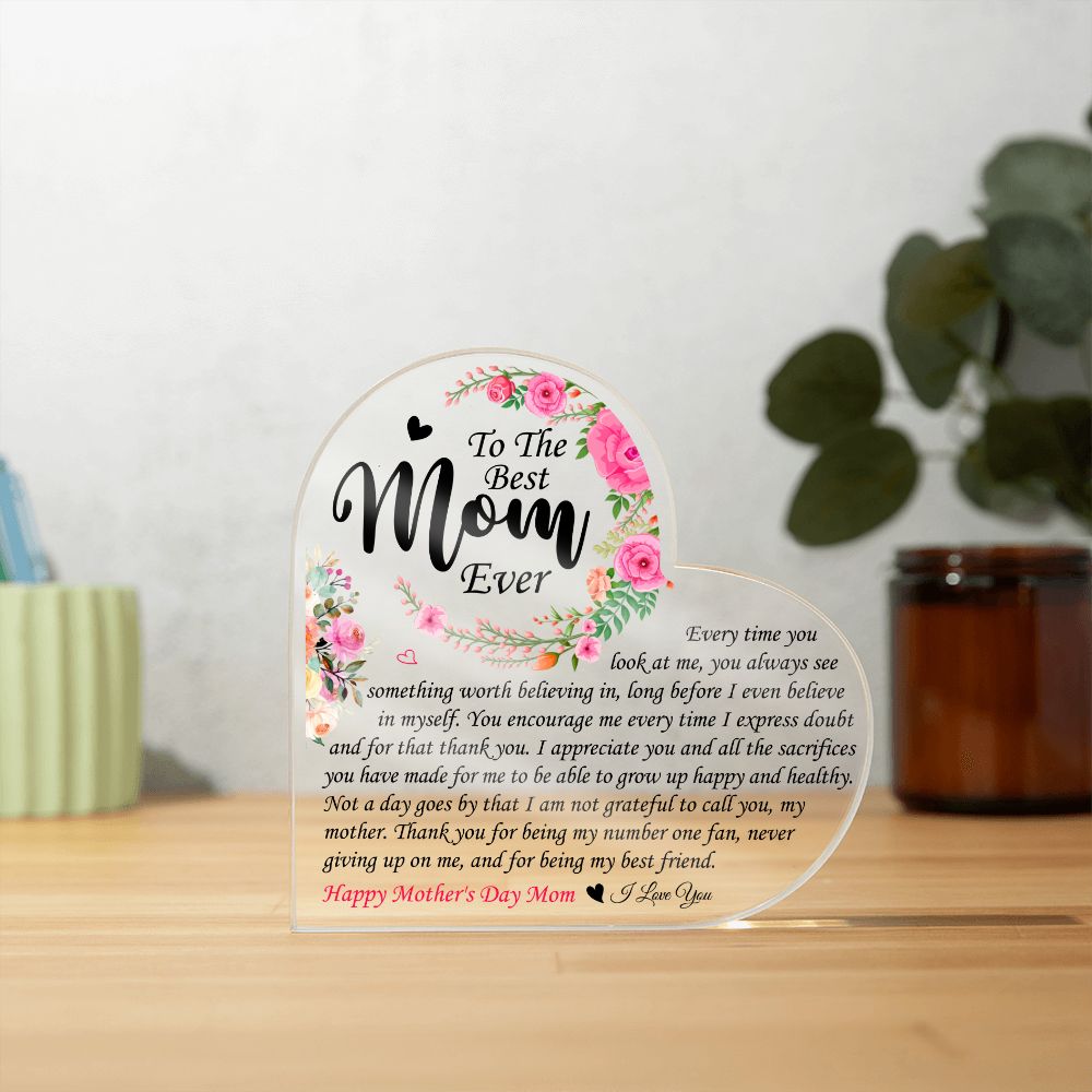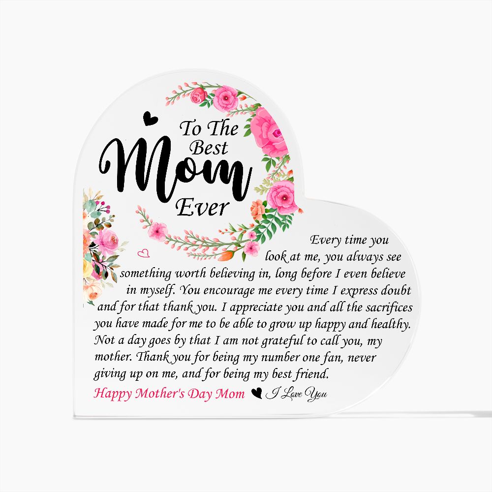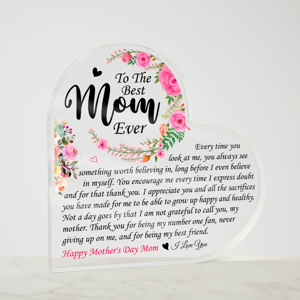 To The Best Mom Ever | Happy Mother's Day Mom | Heart Shaped Plaque